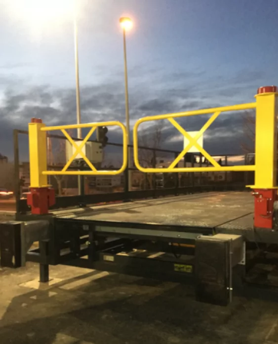 • Barrière de quai asservie avec un système de calage de roue de camion et feux de communication.