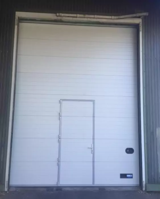 Notre entreprise Proquai a été contactée pour le remplacement d'une porte battante par une porte sectionnelle avec portillon incorporé :